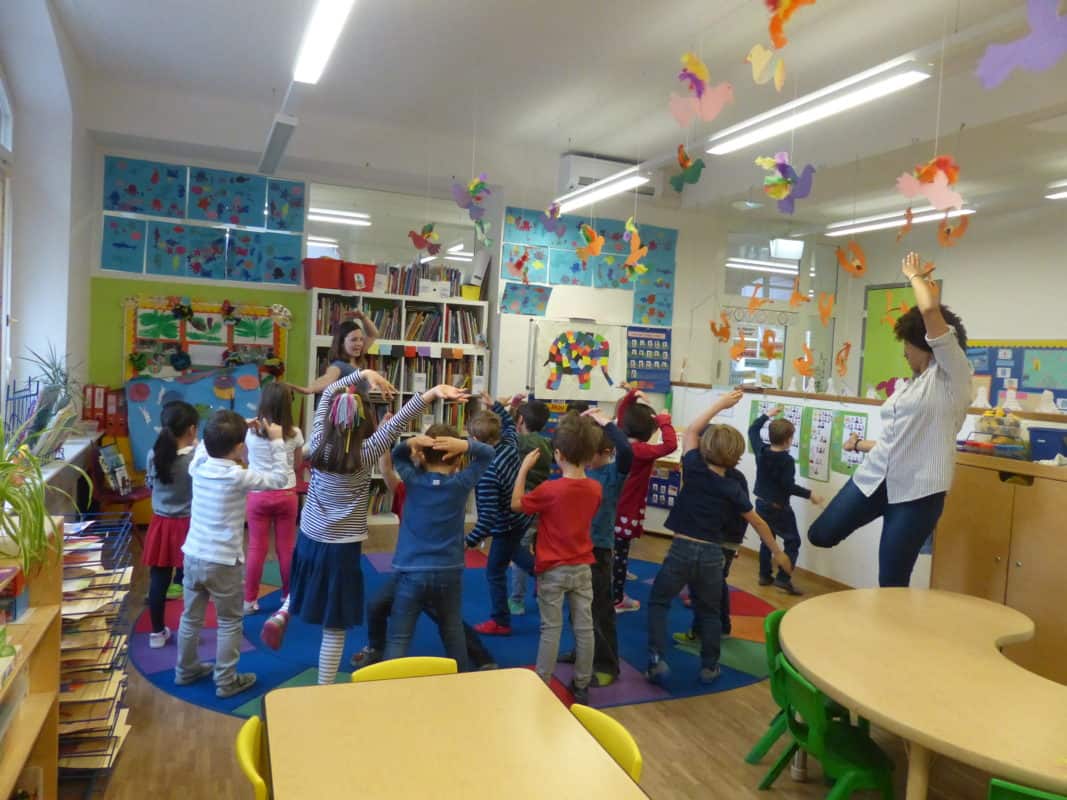 Die Englisch- und die Deutschlehrpersonen unterrichten ungefähr die Hälfte der Woche zusammen in der gleichen Klasse. Alle unsere Kindergartenkinder haben zudem die Möglichkeit, Französisch als weitere Sprache zu wählen.